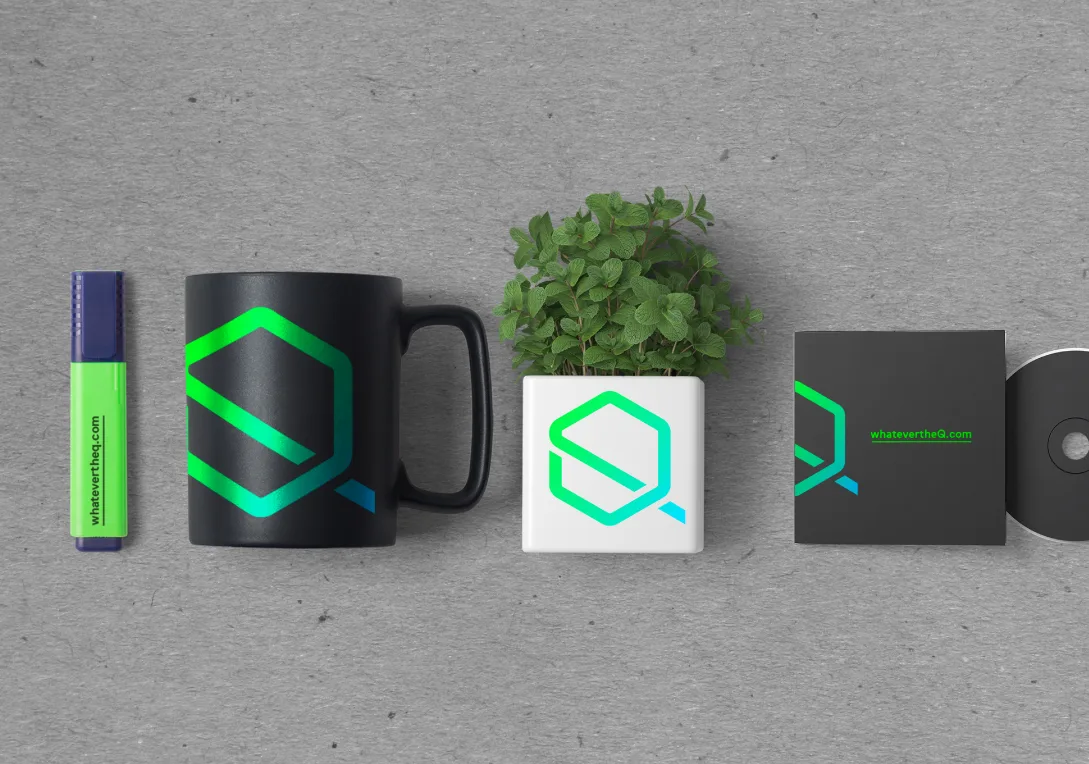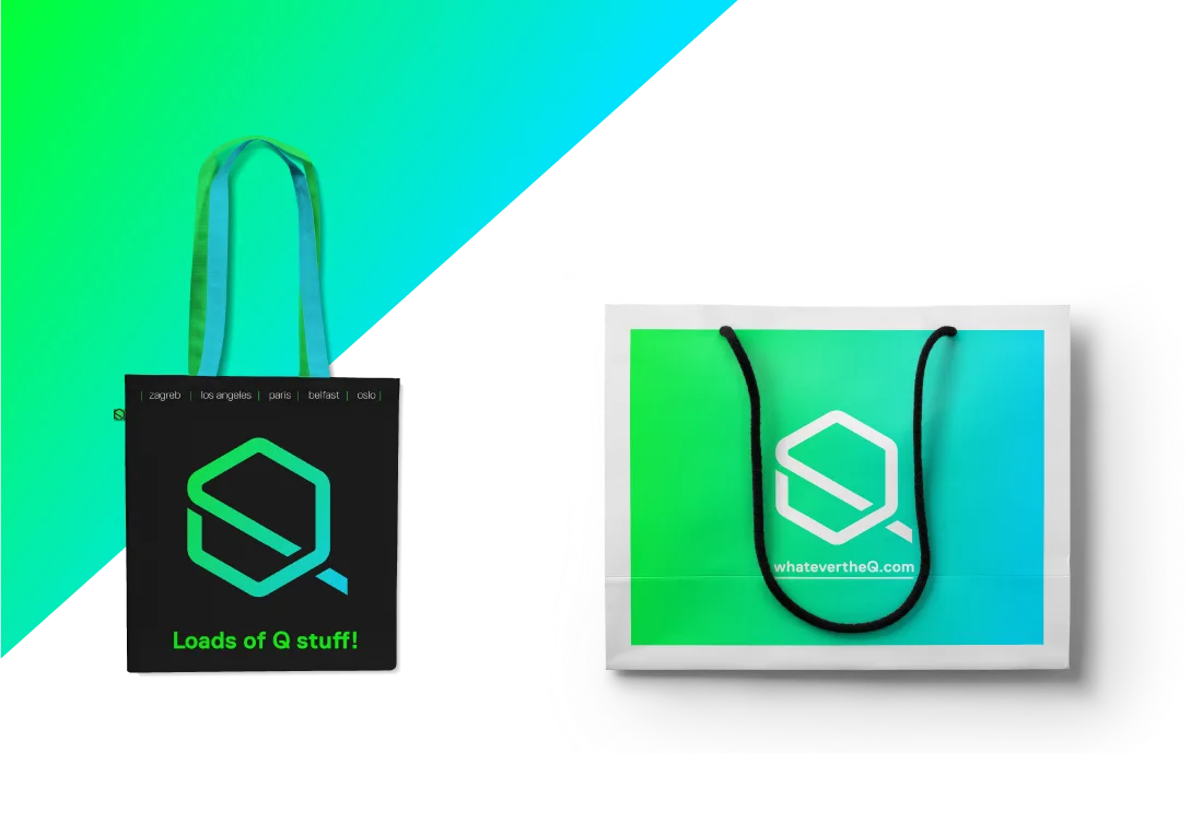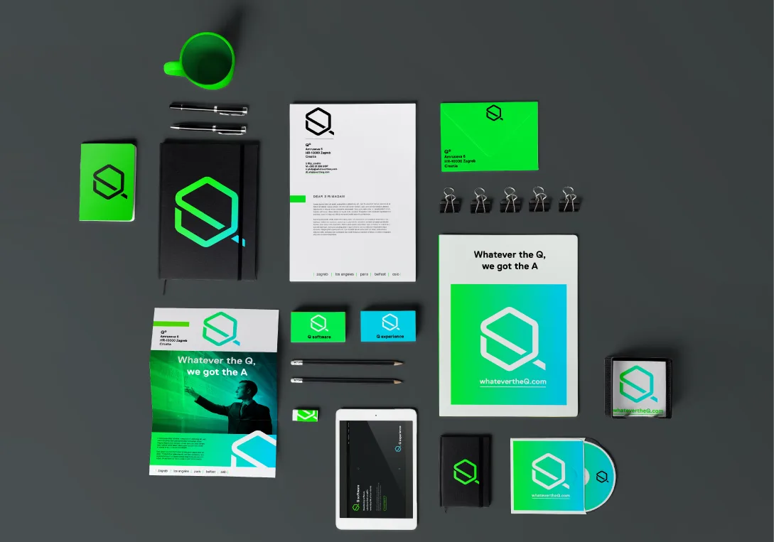 Vizualni identitet utjelovljuje srž branda. Jarke žive boje komuniciraju vibrantni imidž branda, dok sam znak Q u sebi sadrži slova Q i A. Oba slova prikazana su u logotipu čime dodatno projiciramo značenje “Whatever the Q, we got the A”.