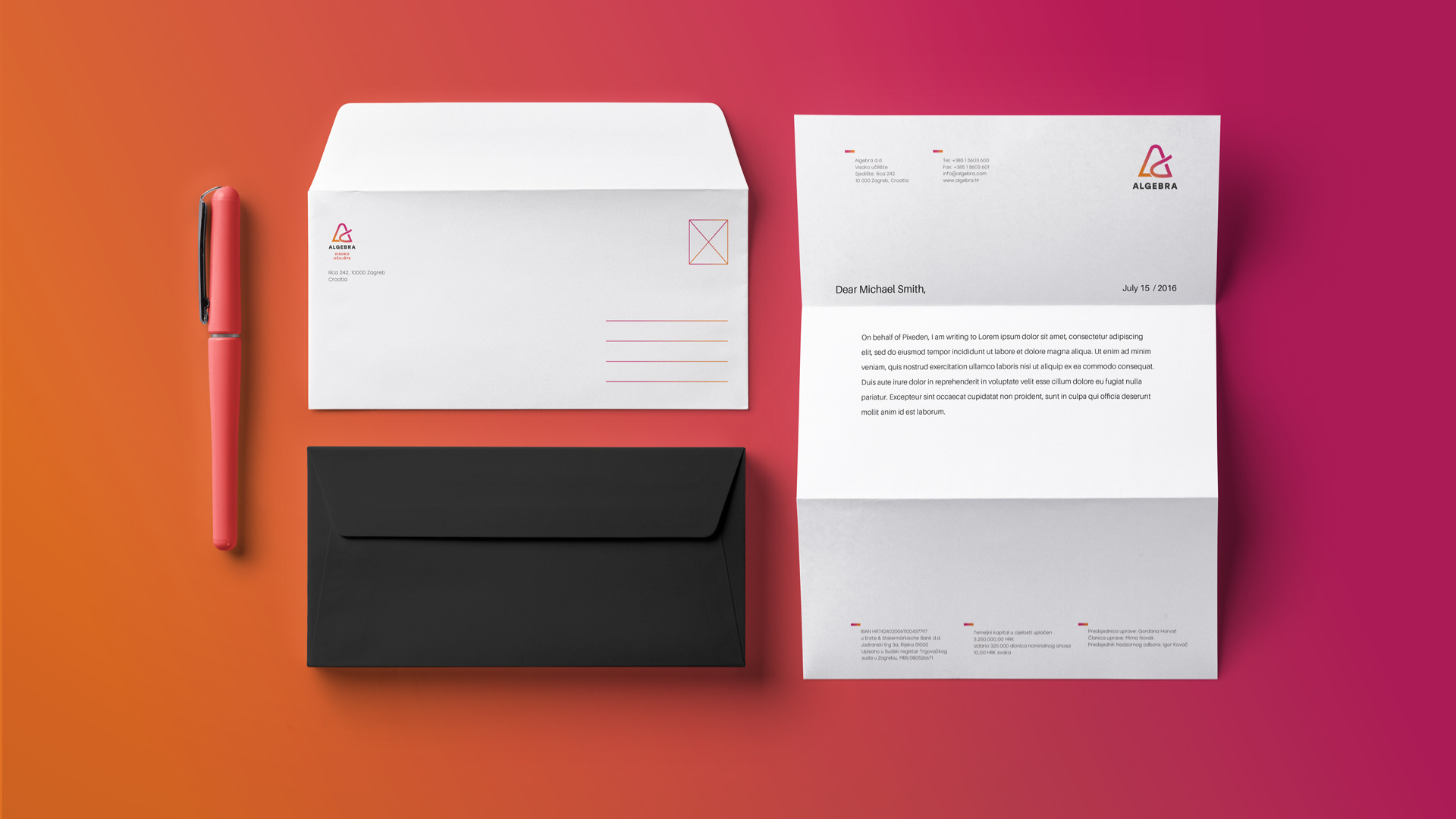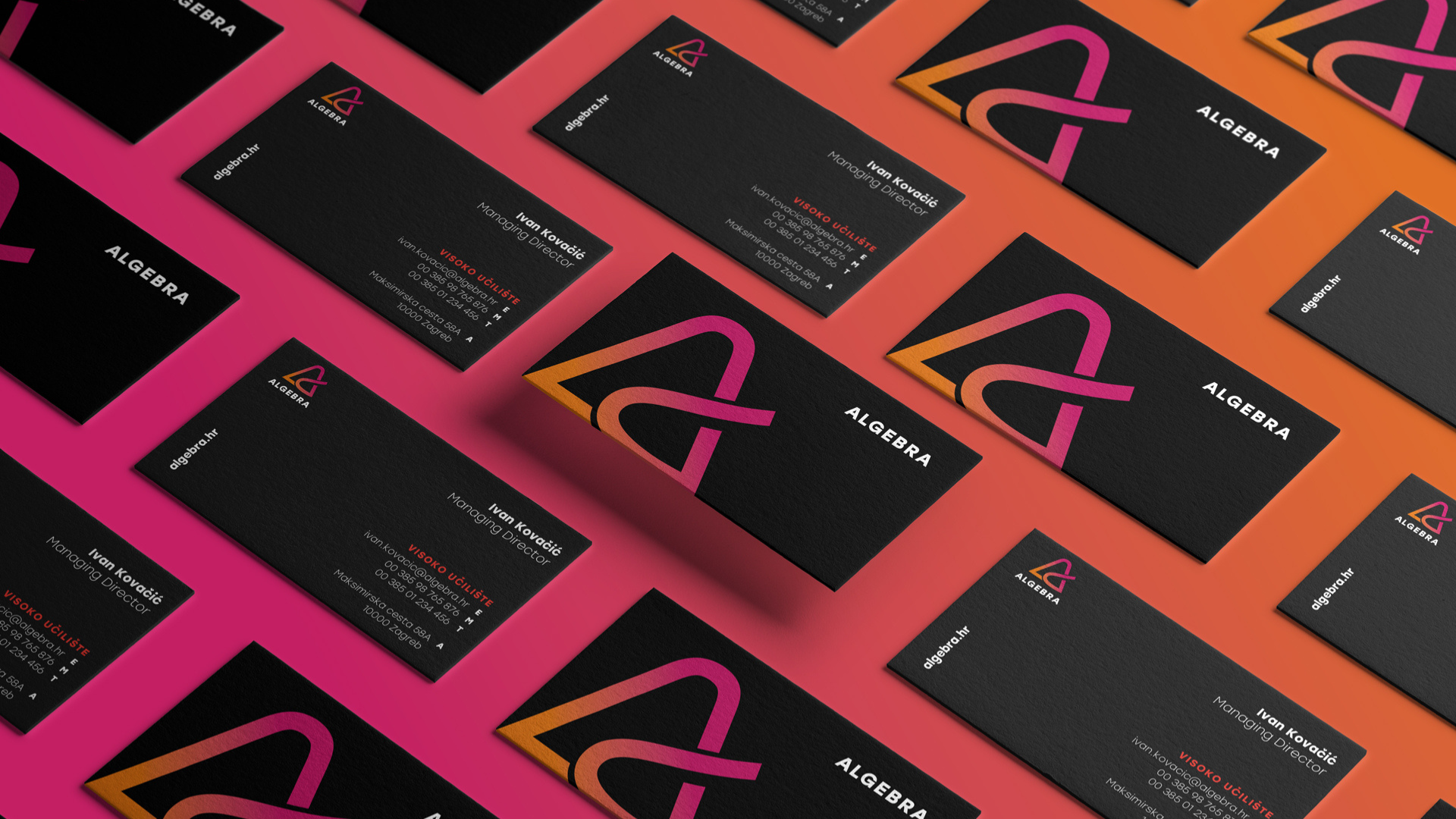 Based on this brand strategy, Studio Sudar has created a new visual identity for Algebra. The logo represents a stylized letter A that reminds us of the pages of an open book, symbolizing learning, continuous growth and progress, and because of its color, energy, passion and spark. The new visual identity has been creatively applied to a variety of applications and to the interior of the campus, thus reviving the brand.