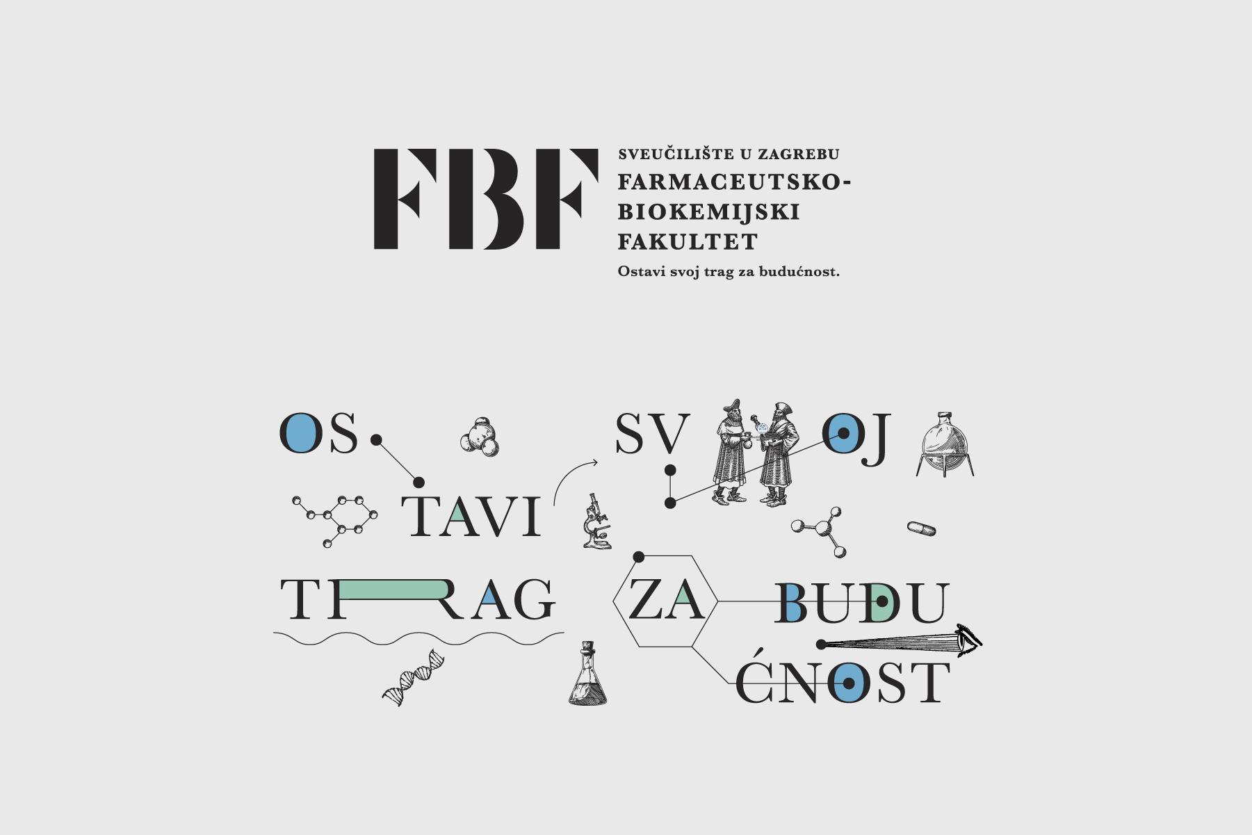 We created the brand strategy, slogan and visual identity for the Faculty of Pharmacy and Biochemistry of the University of Zagreb. For more than 140 years, this unique higher education institution has been granting masters’ degrees in pharmacy, medical biochemistry and laboratory medicine, producing skilled health experts and researchers. Thanks to the high standard of education, the continuous opening of new opportunities for research, development and innovation, new generations of scientists and teachers are being educated at the Faculty of Pharmacy and Biochemistry, ushering it into a new era.