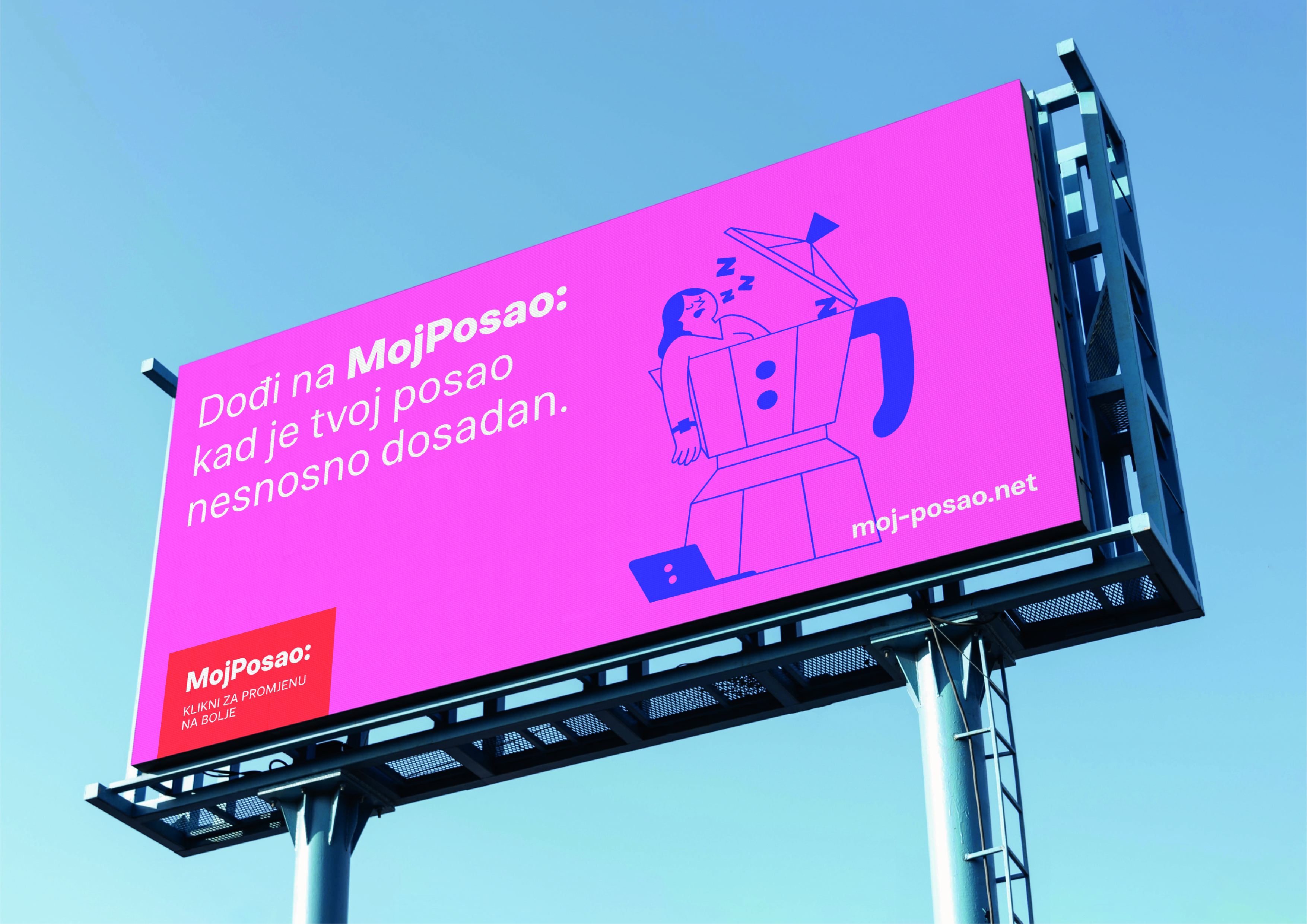We rebranded and created a 360° creative campaign for MojPosao, a brand that for 20 years has been the first and remains the leading choice for job hunting and career development in Croatia. Due to numerous changes in the labor market, MojPosao wanted to strengthen its leadership position, its verbal and visual identity.