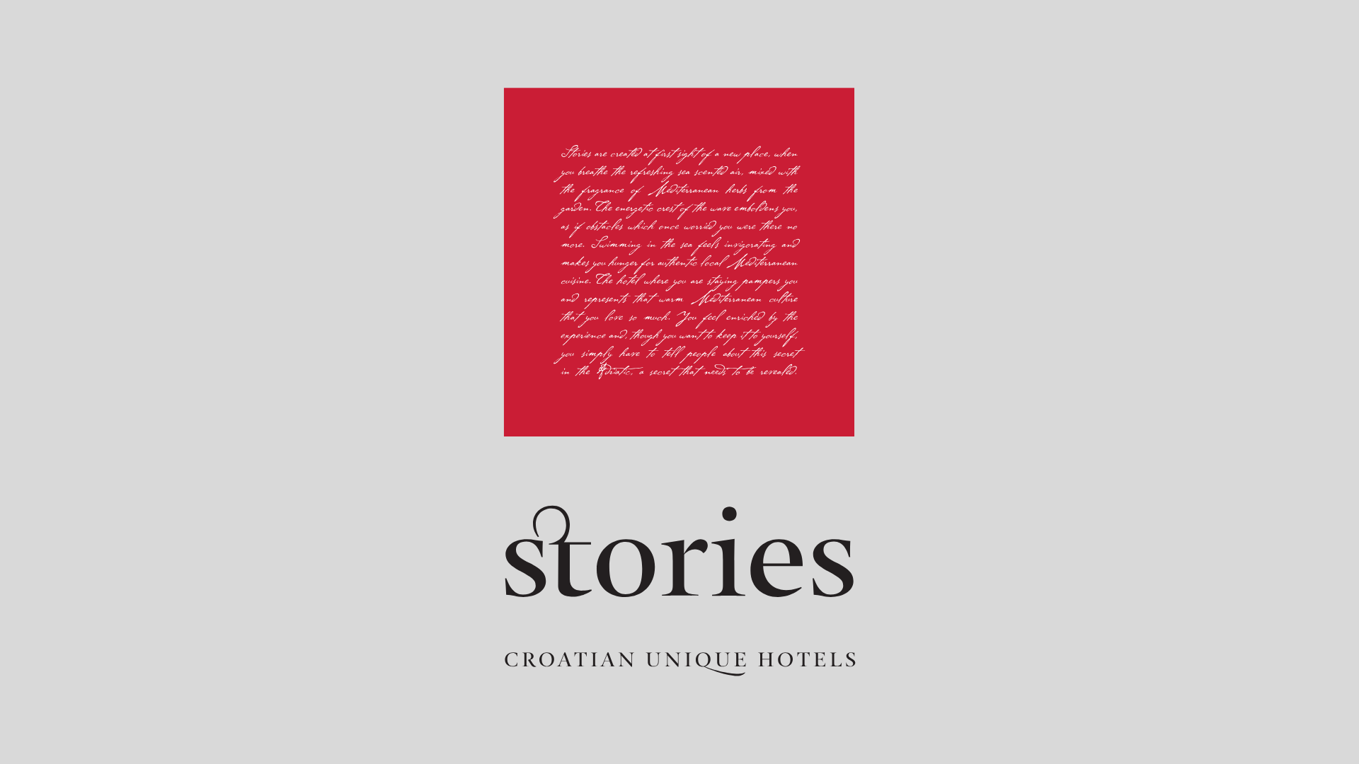 The visual identity draws its inspiration from two points – first – the motive of the red square dominating Croatian visual identity and second – handwritten story narrating the Croatian experience. The red square and the story together form the visual identity.