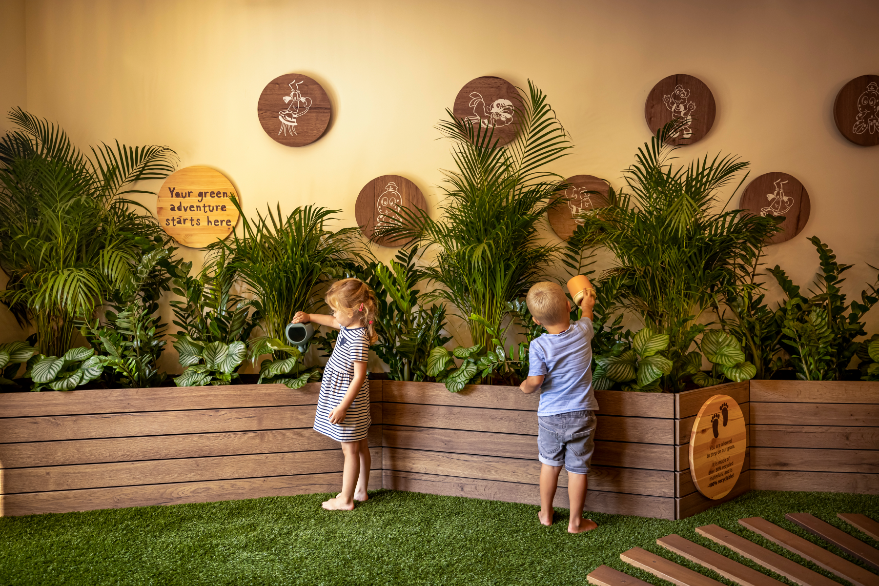 We created the new visual identity, as well as the entire signage and different visual applications in the resort that communicate sustainability, from info boards and graphics in the rooms, to toys and soap packaging.