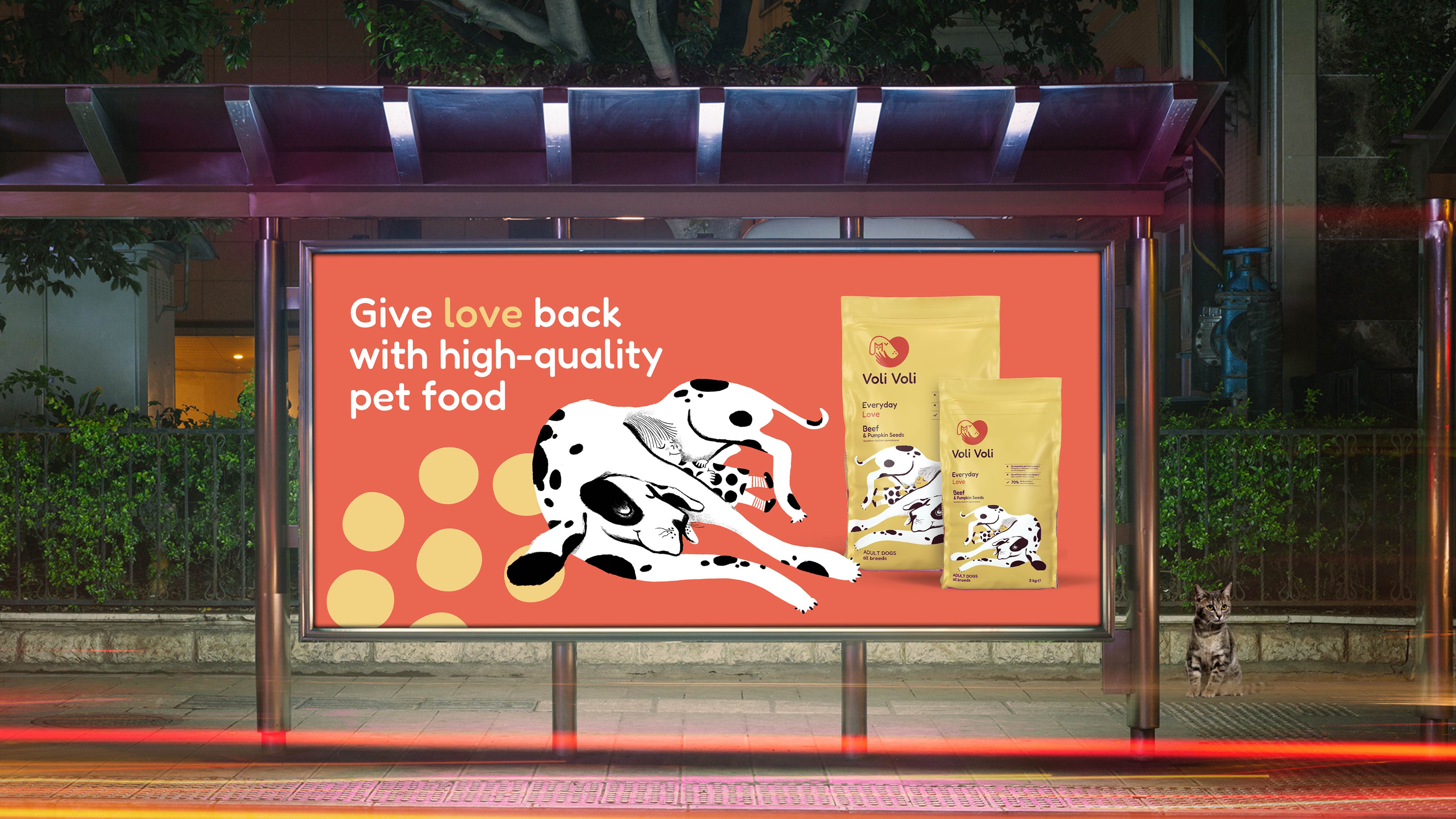 Based on the brand strategy, we created a playful name – Voli Voli. We named the product lines to describe the many faces of love, such as Love for All, Everyday Love, Extra Special Love. With the brand’s new slogan “Give Love Back”, we communicate the return of love with high-value food.